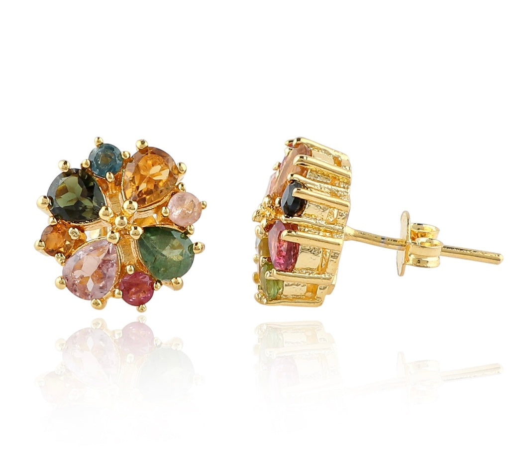 925 Sterling Silver Multi-Tourmaline Flower Studs | 18k Gold Vermeil
